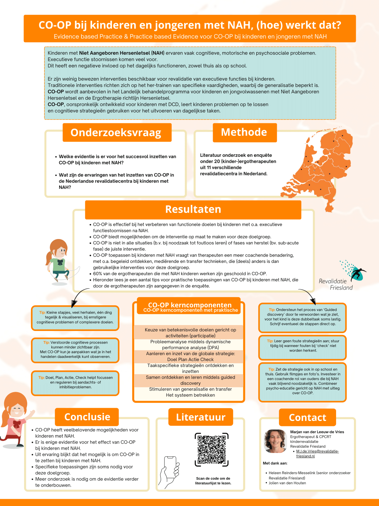 2. Enquête onder ergotherapeuten. Via een vragenlijst is in kaart gebracht hoe CO-OP momenteel in de kinderrevalidatie in Nederland wordt toegepast bij kinderen en jongeren met NAH.